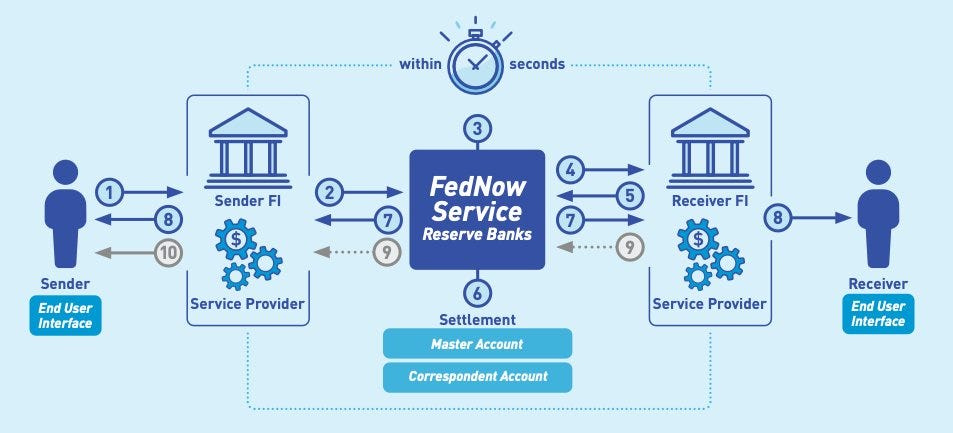 FedNow is an instant payment system where every transaction is processed through a Federally-controlled server.